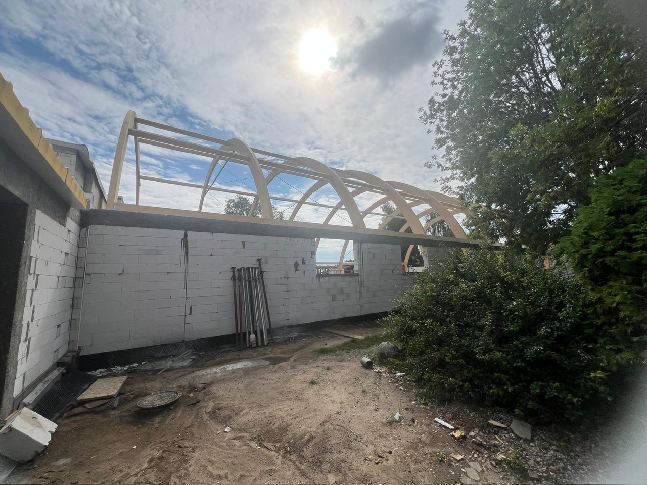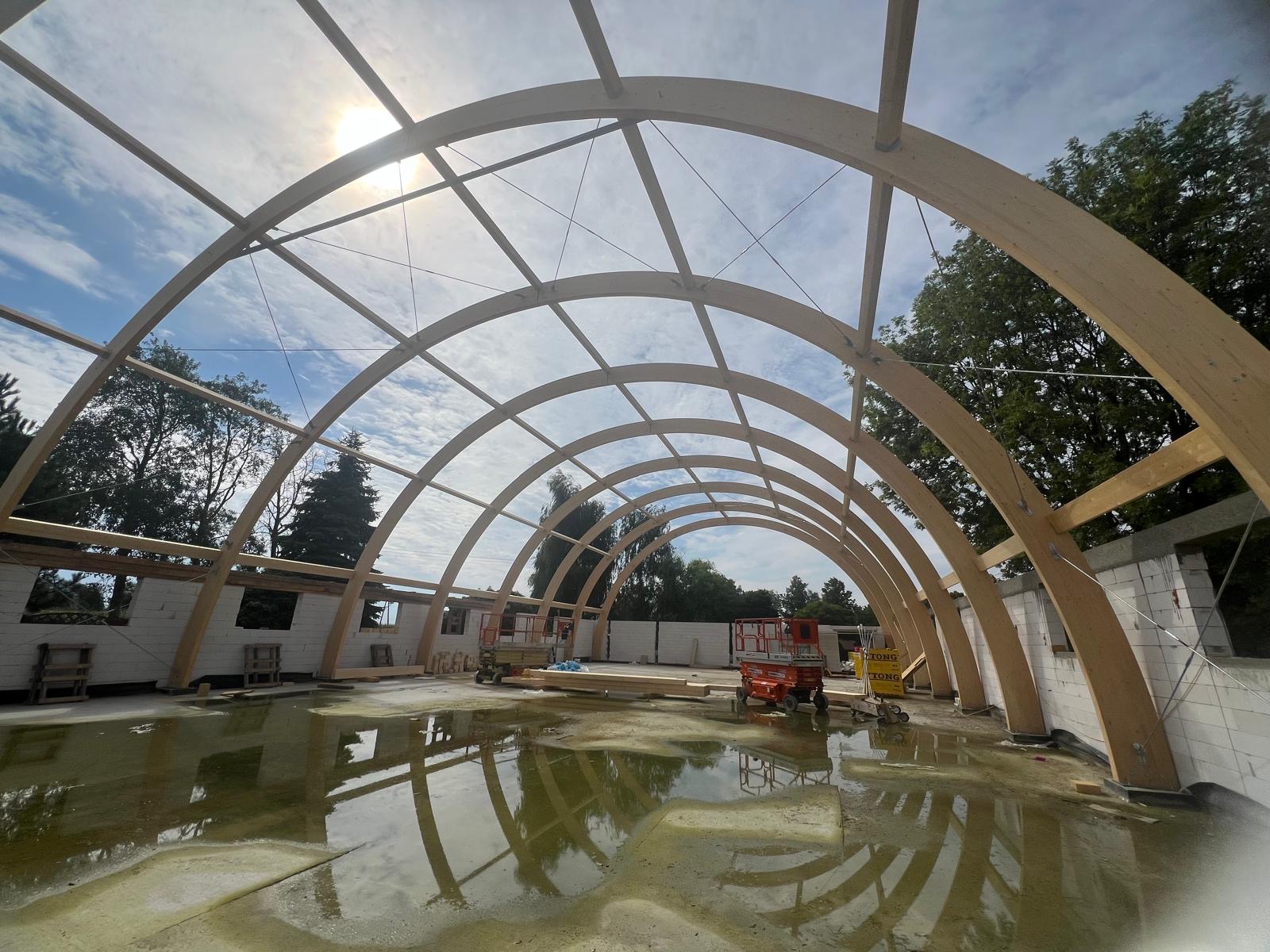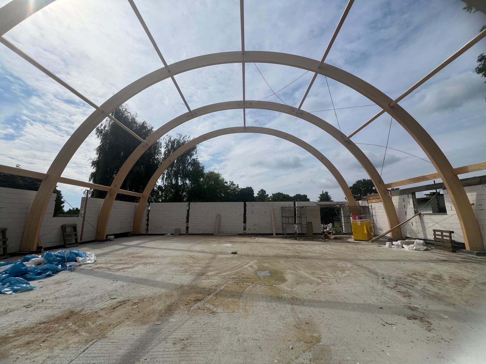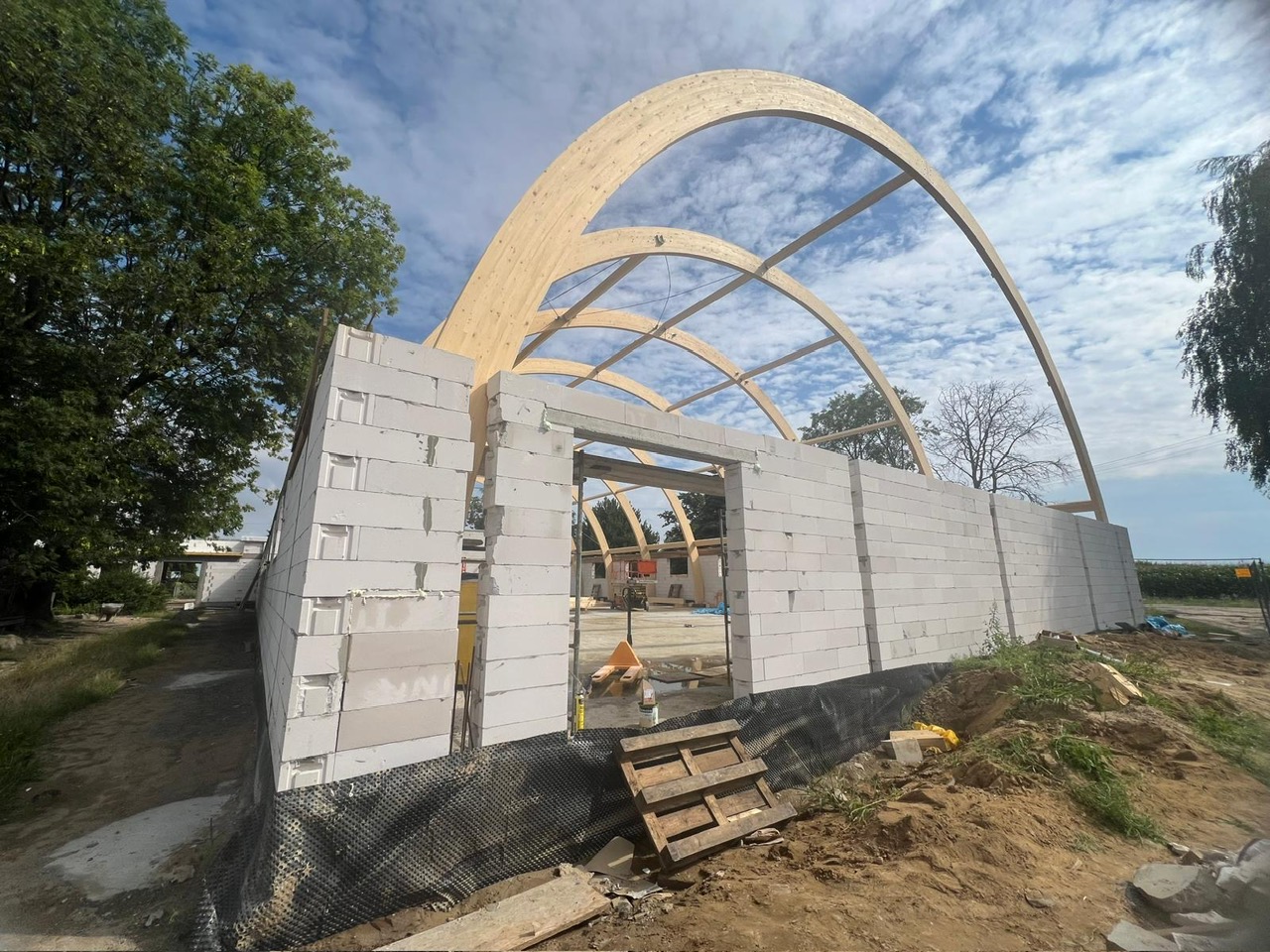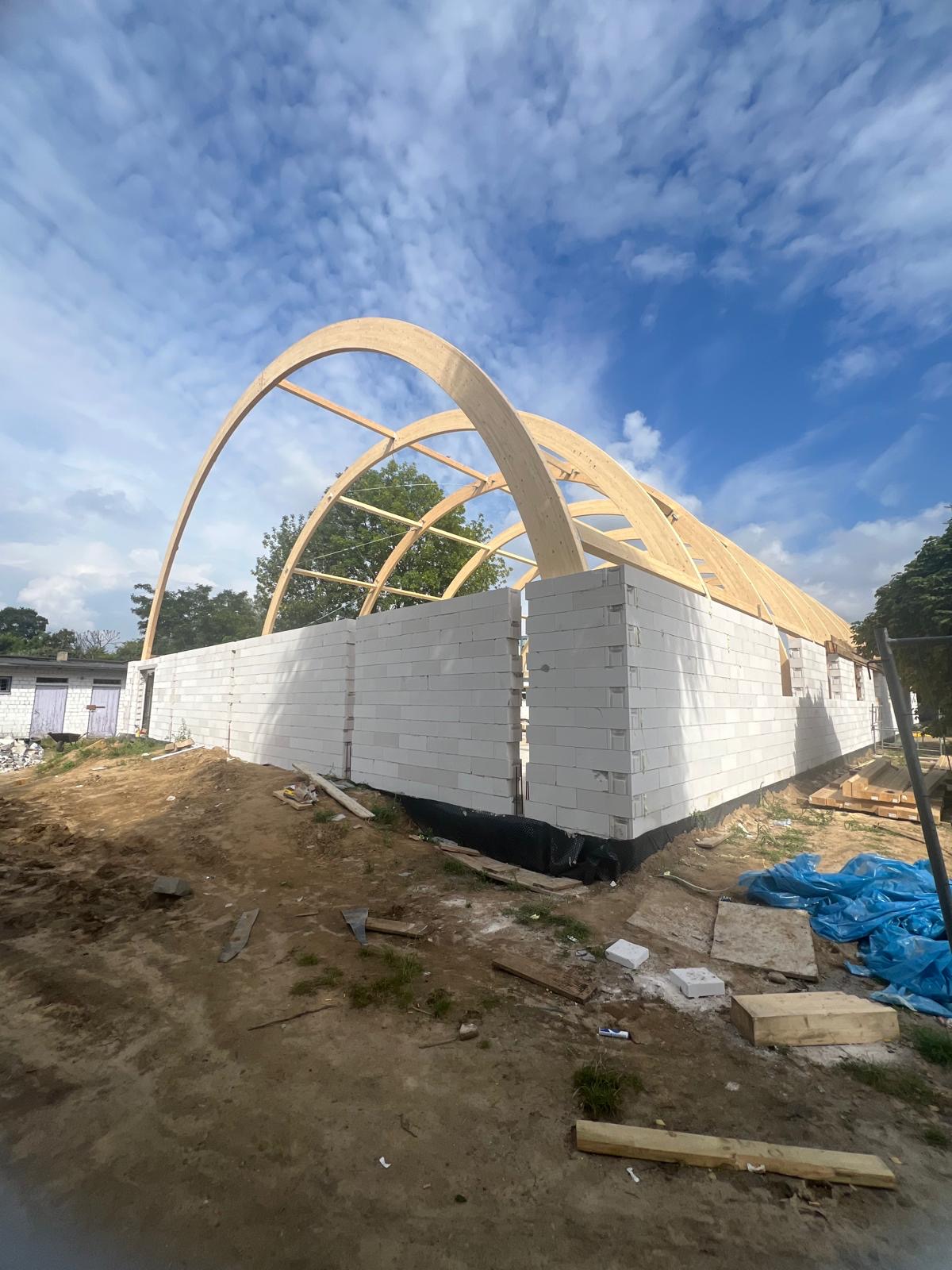 Aktualnie wykonano już wszelkie roboty murarskie, zarówno w części socjalnej, szatniowej jak i na hali. W częściach pomieszczeń szatni wykonano posadzki. Wykonano także konstrukcję drewnianą boiska. Wykonanie pokrycia dachu zaplanowano na koniec sierpnia. Aktualnie trwają też prace nad instalacją elektryczną w pomieszczeniach.