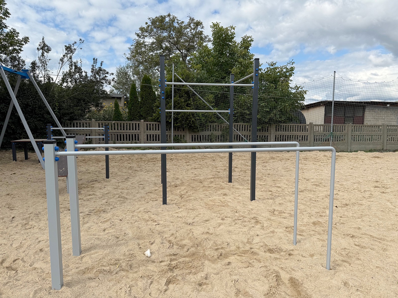 - Street workout – drążki gimnastyczne - konstrukcja wykonana z profili stalowych 7 x 7 cm, ocynkowanych, malowanych proszkowo, drabinki, drążki poprzeczne wykonane ze stali ocynkowanej, malowanej proszkowo,