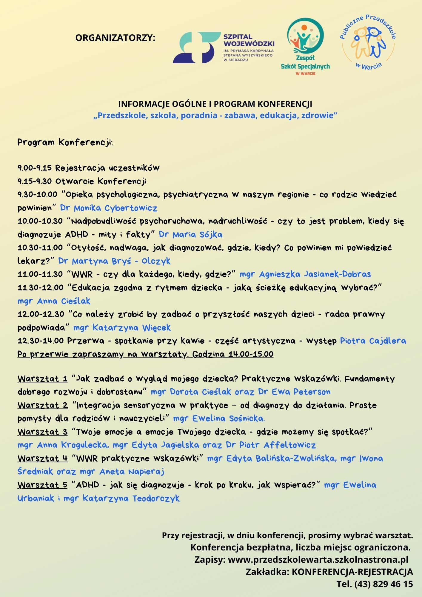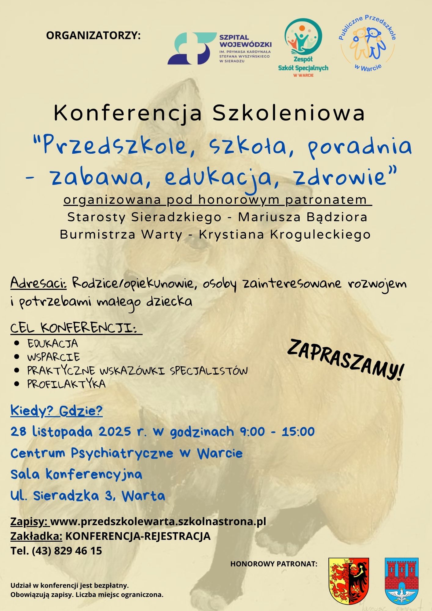 Centrum Psychiatryczne w Warcie, Zespół Szkół Specjalnych w Warcie oraz Publiczne Przedszkole w Warcie zapraszają rodziców, opiekunów oraz wszystkich zainteresowanych rozwojem i potrzebami małego dziecka. Spotkanie ma charakter edukacyjny i profilaktyczny - przypomina, że troska o dobrostan dziecka nie zaczyna się dopiero w momencie kryzysu, ale na co dzień.