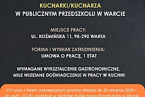 Stanowisko: Kucharki/Kucharza CV należy składać osobiście w siedzibie Publicznego Przedszkola w Warcie przy ul. »»